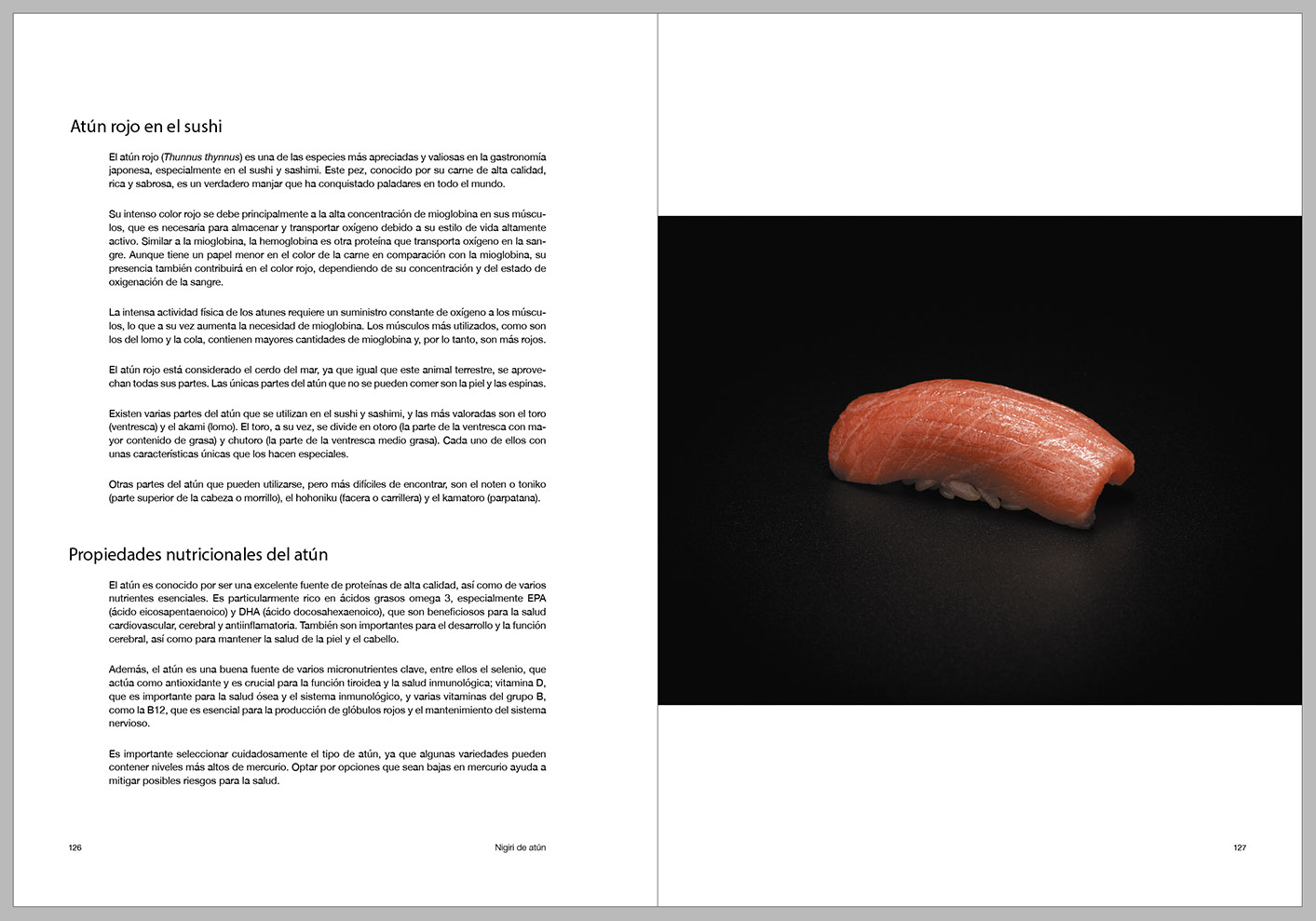 Más que un libro, es una inmersión en el arte y la tradición del sushi, una de las expresiones culinarias más refinadas y apreciadas del mundo. A lo largo de 304 páginas y con más de 90 fotografías de gran calidad, exploramos en detalle los ingredientes, técnicas y secretos que convierten al sushi en una joya de la gastronomía nipona.