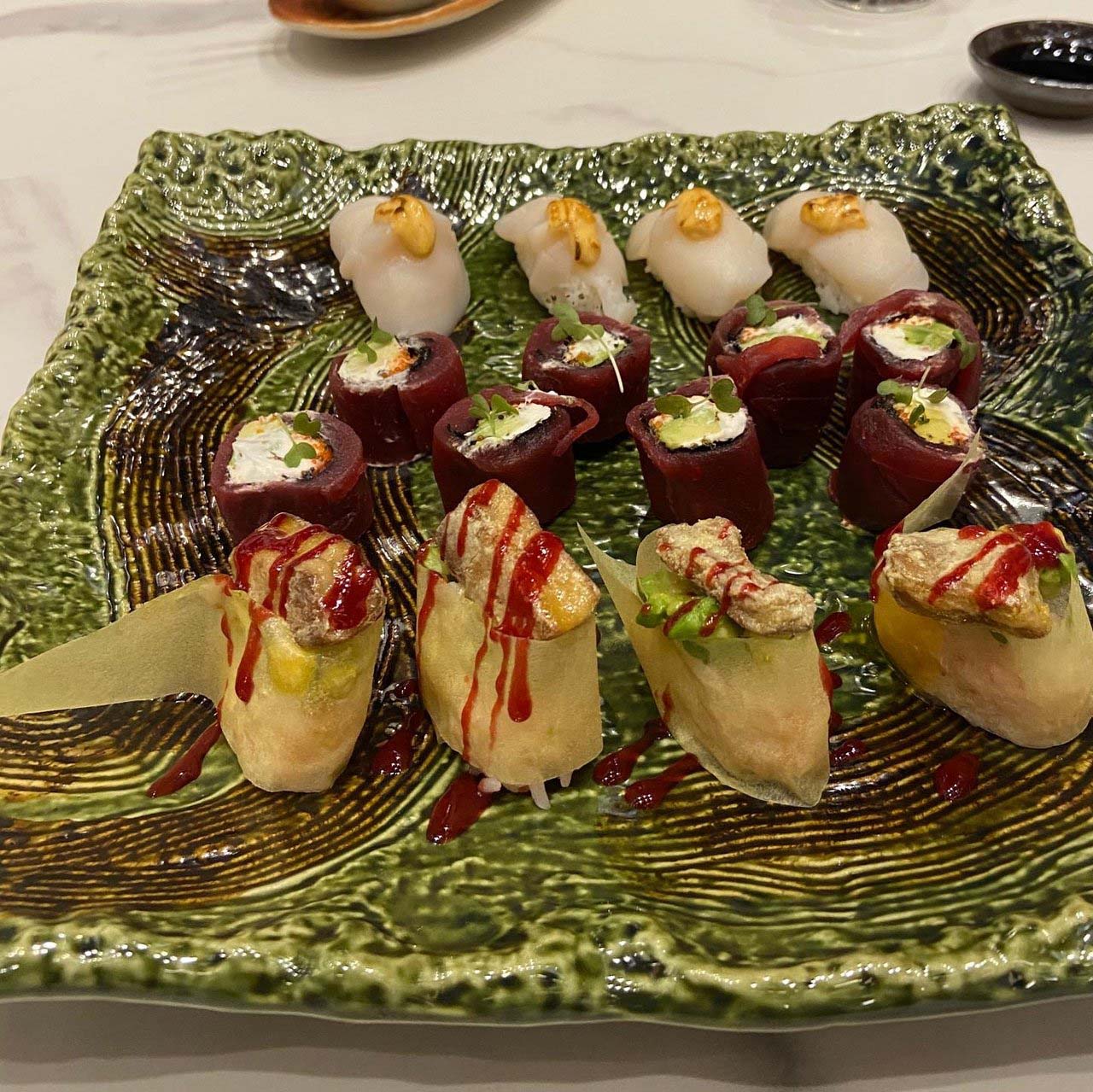Cocina asiática creativa. Sushi, platos elaborados en la robata y mucho más. También disponen de un menú degustación