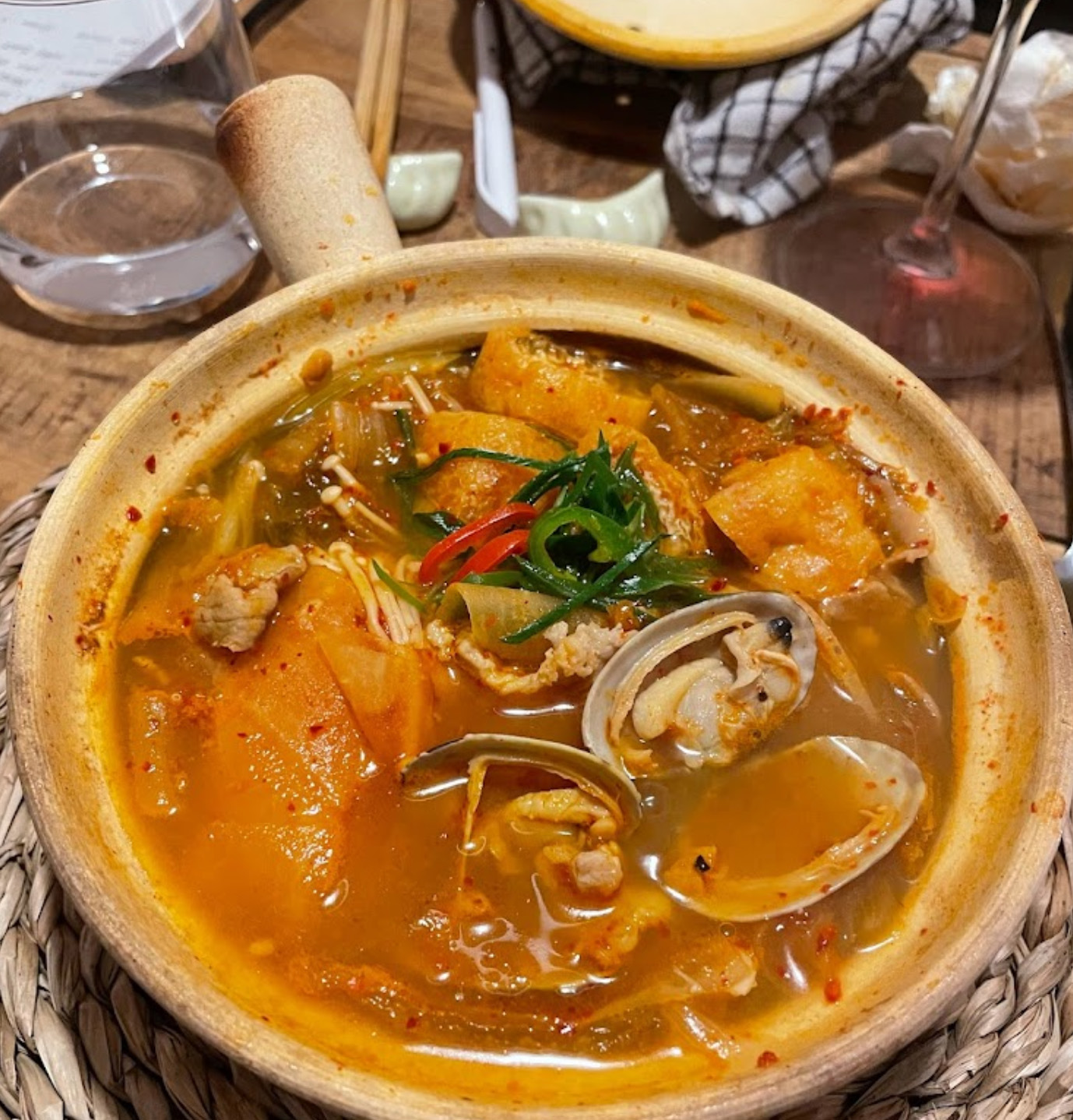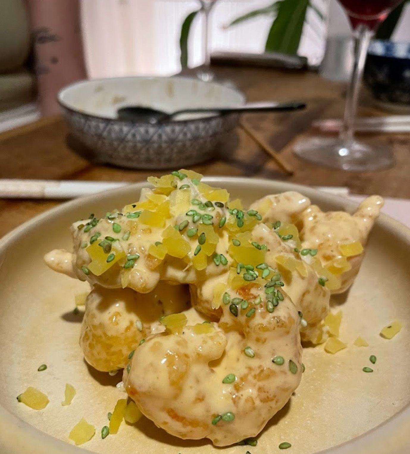 Restaurante de gastronomía del noreste de Asia: Japón, China y Corea. Vinos naturales. Mediodía un menú fijo con opciones vegetarianas y veganas. Por la noche es un bar de vinos, acogedor y con platos pequeños para compartir y una selección de cuvées naturales de viticultores artesanos de Europa.