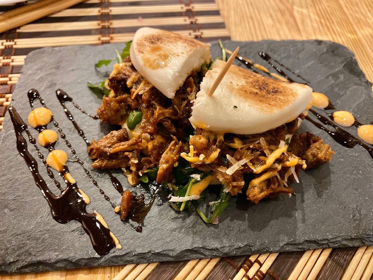 Restaurante de fusión asiática y latinoamericana. Menú con 8 platillos por un precio cerrado. Local pequeñito, se puede comer en la barra o en mesitas altas.