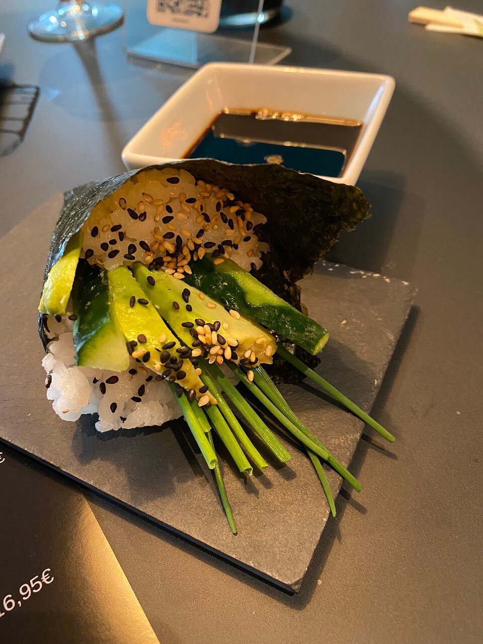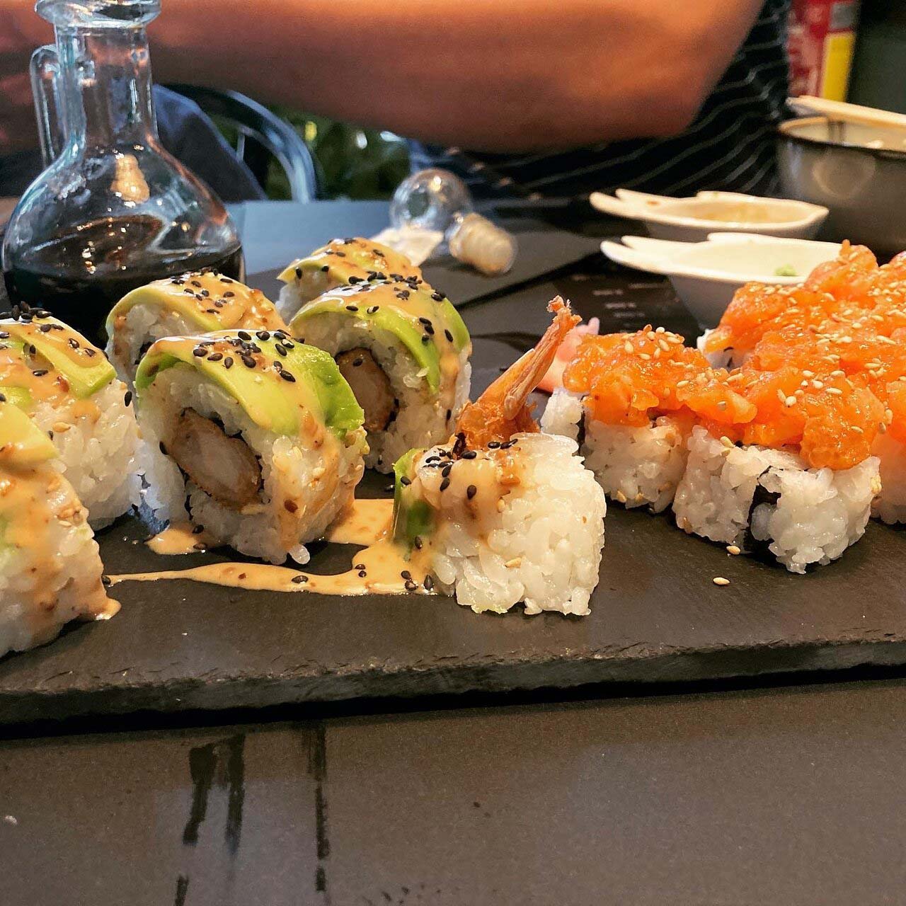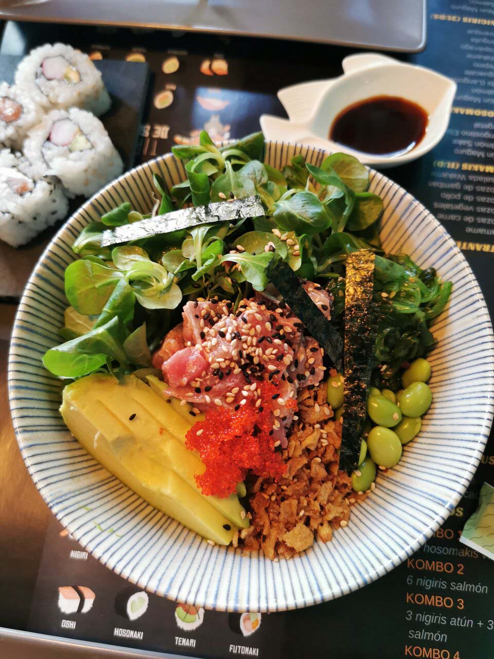 Restaurante especializado en sushi. También encontraréis entrantes típicos nipones: edamame y gyozas variadas además de ensaladas, pokes y postres japoneses. Local pequeño y acogedor.