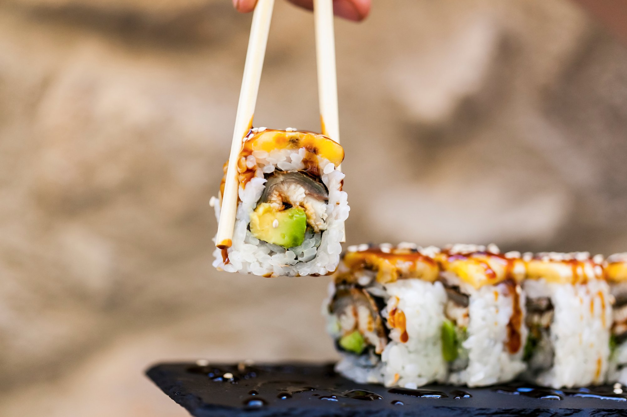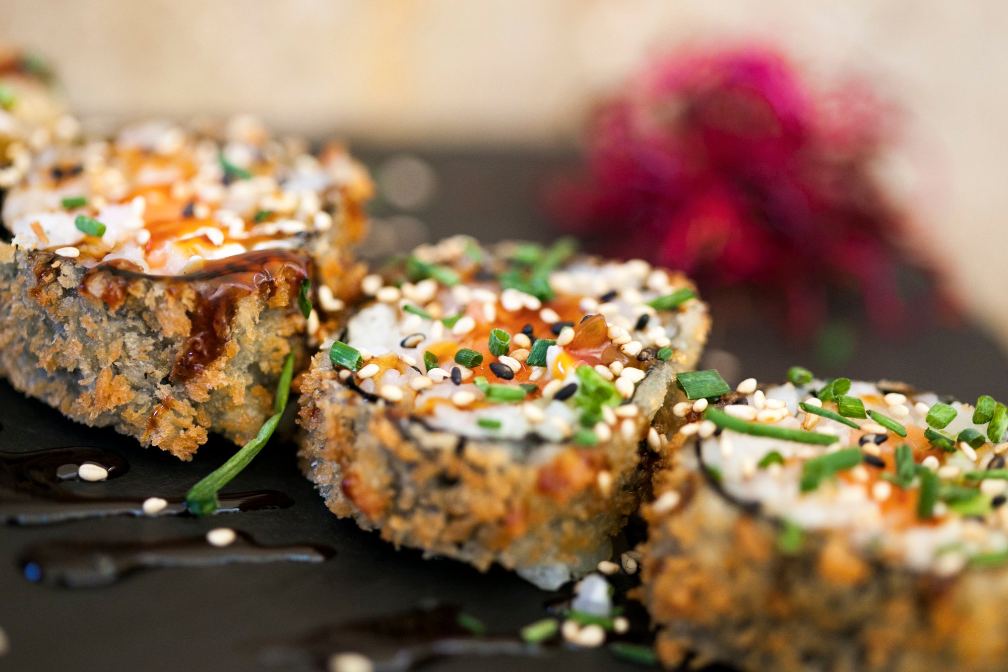 Restaurante de cocina japonesa especializado en sushi tradicional y también  creativo. Decoración moderna con mobiliario de madera,  detalles en azul turquesa y un luz cálida que da intimidad.