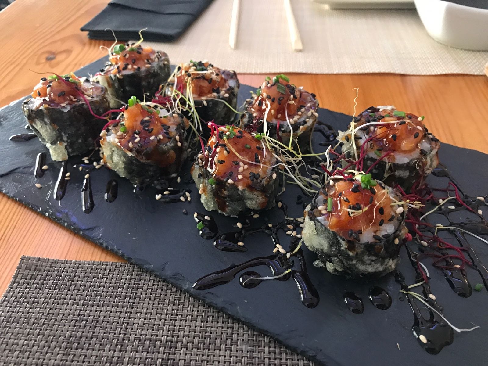 Restaurante de cocina japonesa. Especialidad en sushi y además en la carta encontraréis platos para picar, entrantes, tratar, tataki y más.