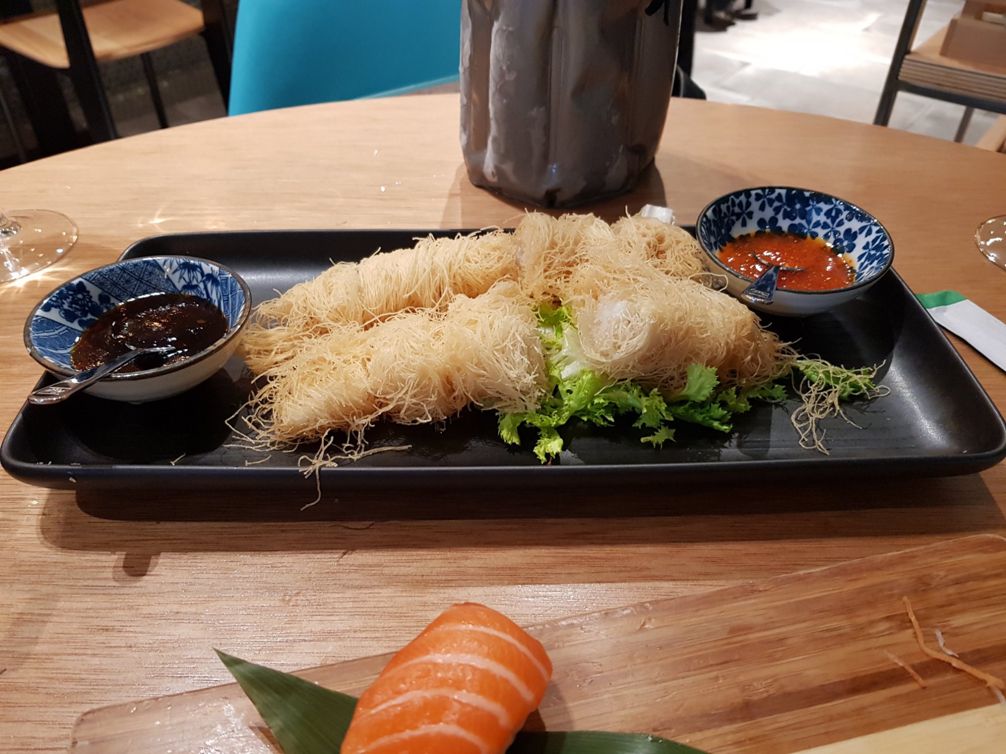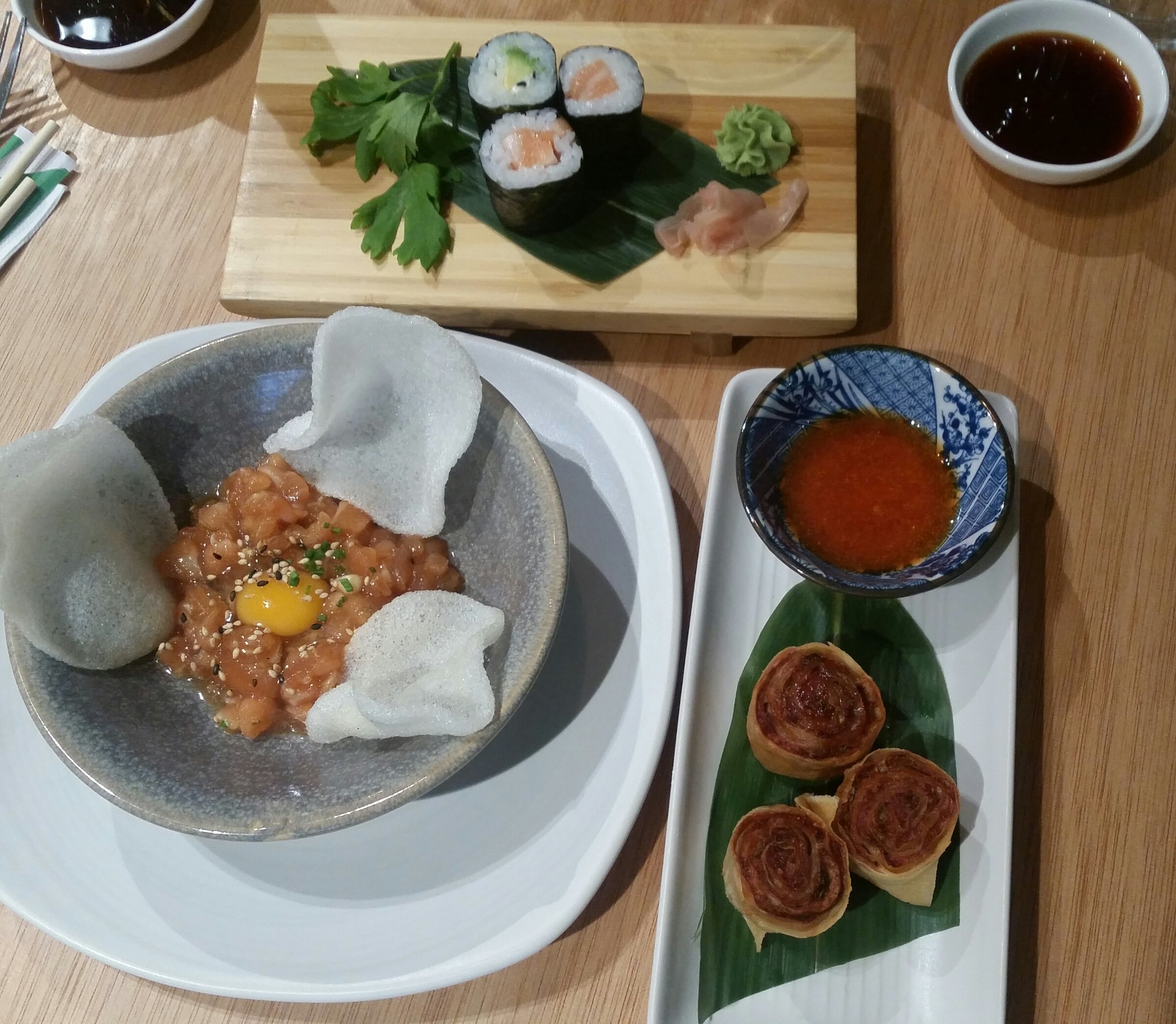Restaurante japonés de fusión. En la carta encontraréis platos tìpicos de la cocina japonesa y de otros paises, fusionando sabores y aromas para crear nuevas sensaciones. Decoración moderna y ambiente acogedor, con 3 espacios: mar, bosque y sol naciente. Dispone de menú de mediodía.