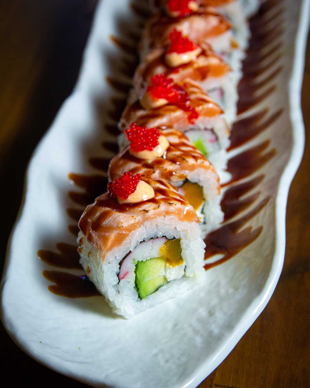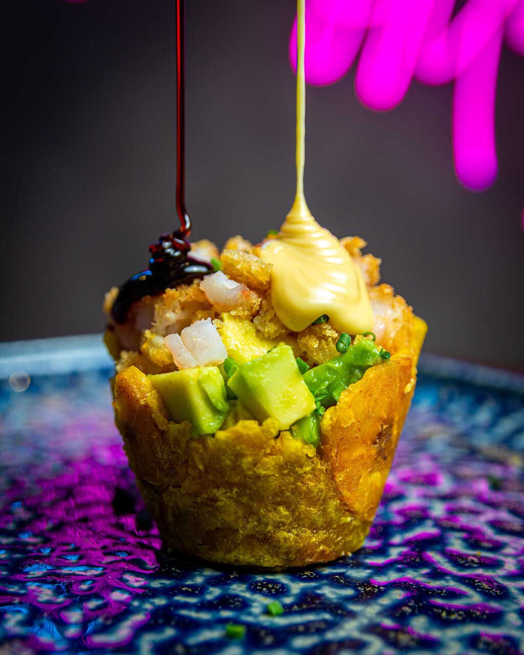 Restaurante de fusión con una oferta de platos diferentes, fresca y tropical. Entrantes variados, sushi y poke. Además tienen  carta de cócteles con presentaciones muy especial